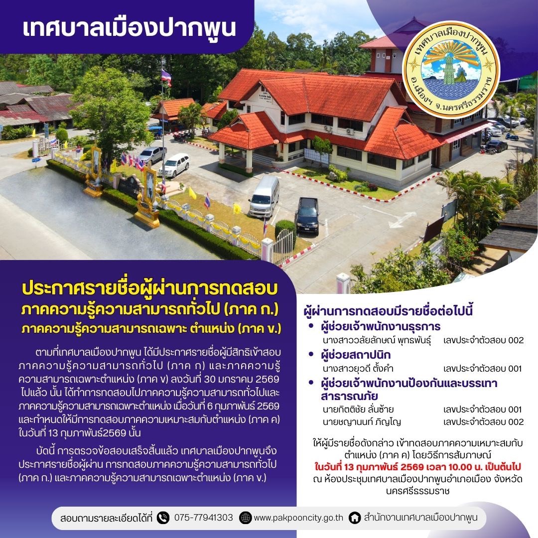 รายชื่อผู้ผ่านการทดสอบภาคความรู้ความสามารถทั่วไป (ภาค ก.) และภาคความรู้ความสามารถเฉพาะ ตำแหน่ง (ภาค ข.)