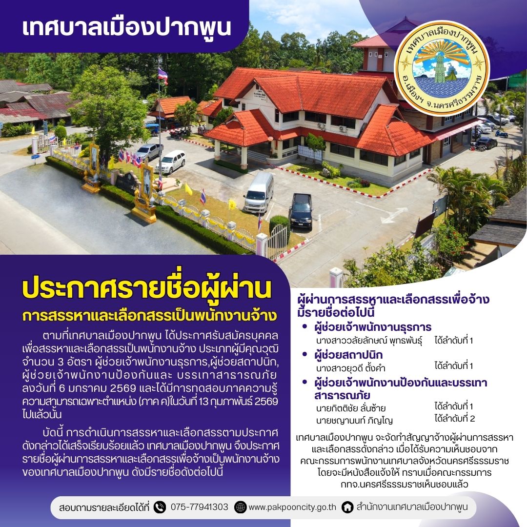 ประกาศรายชื่อผู้ผ่านการสรรหาและเลือกสรรเป็นพนักงานจ้าง